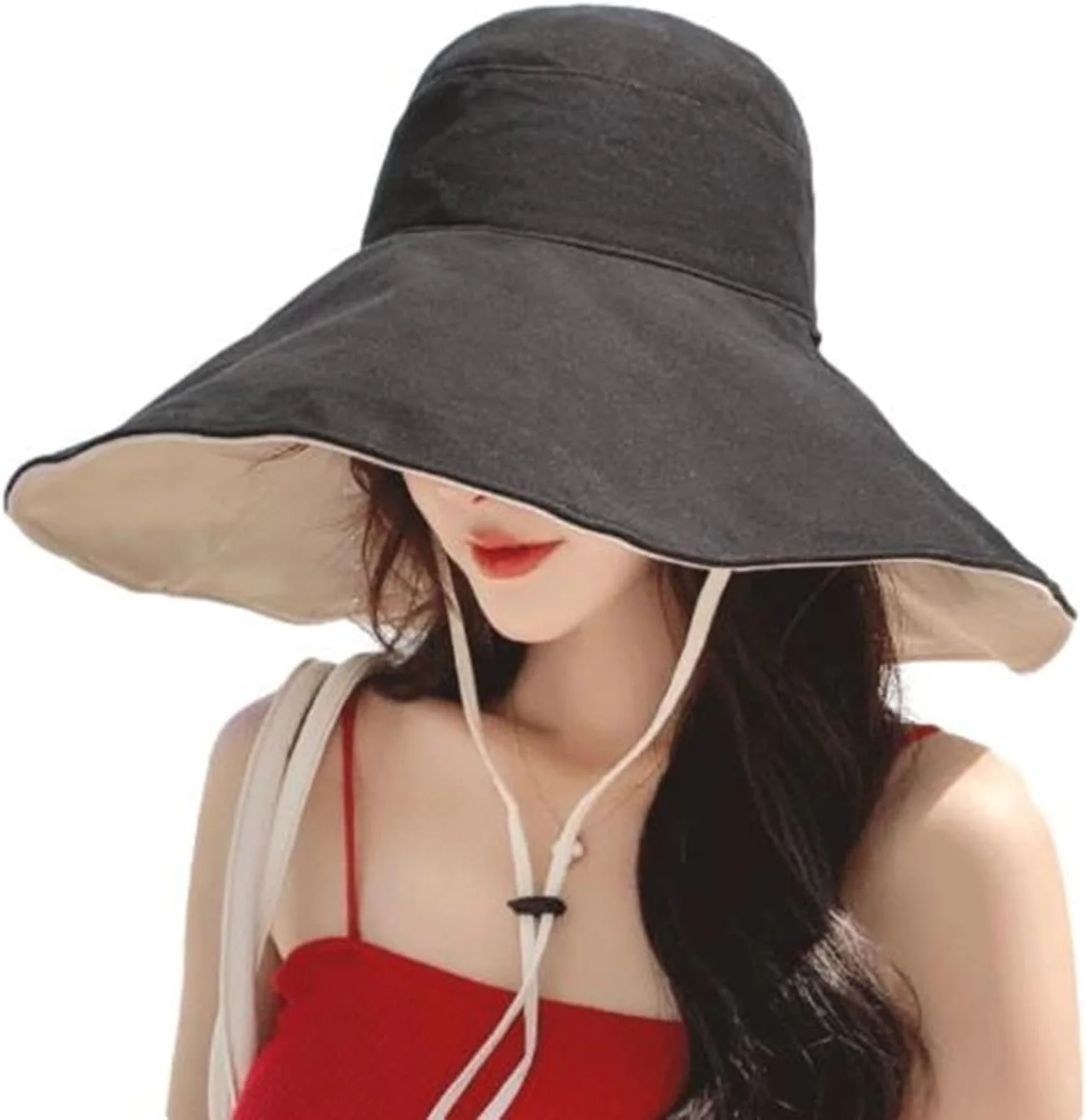 [Aquamie] 日除け 帽子 つば広 折り畳み 日よけ レディース サマー ハット 日焼け防止 紫外線 UV カット あご紐付き 綿 リバーシブル