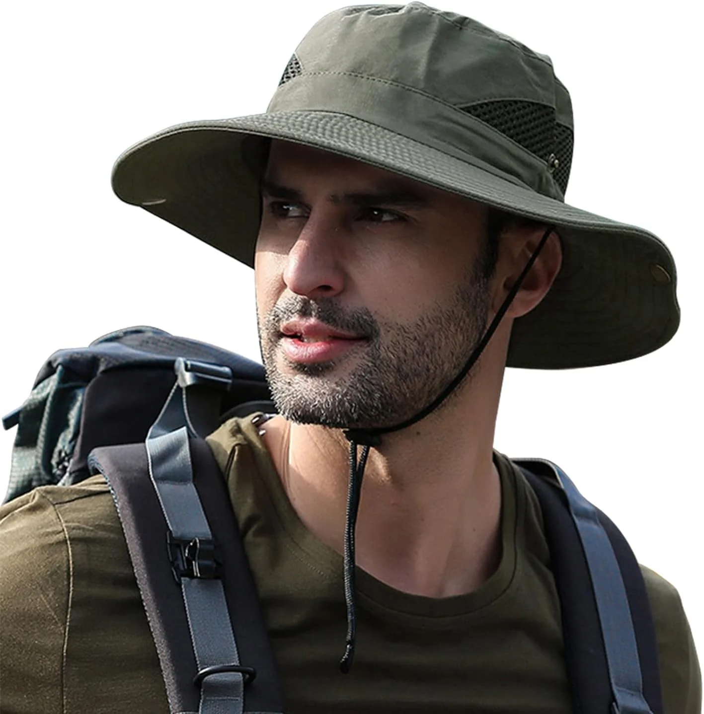 [Pawinpaw] サファリハット メンズ つば広 帽子【メッシュ通気・UPF50+ UVカット・撥水・防汚・超軽量】日除け帽子 ハット 折り畳み 速乾性 おしゃれ 紫外線対策 あご紐付き 自転車/釣り/登山/スポーツ/アウトドア